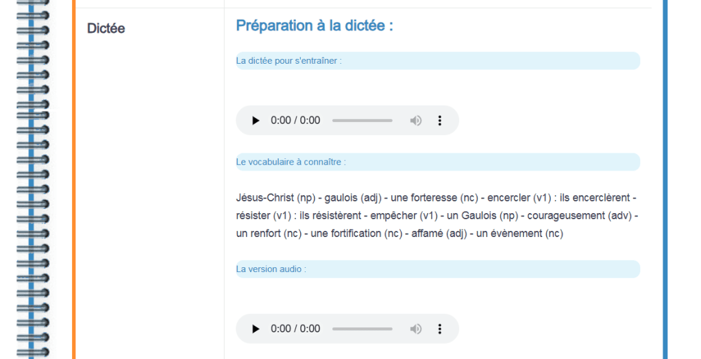 En plus des devoirs, il m’arrive d’ajouter des supports multimédias (comme le fichier audio de la dictée ou des mots à apprendre, des liens vers des sites internet)