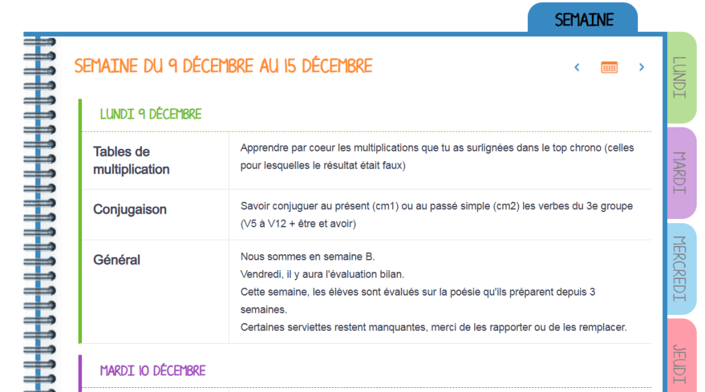 Un cahier de textes numérique a de nombreux avantages car il permet d’ajouter des aides et des supports. Cependant, les élèves possèdent une feuille « devoirs » dans leur porte-vue pour avoir la version papier.