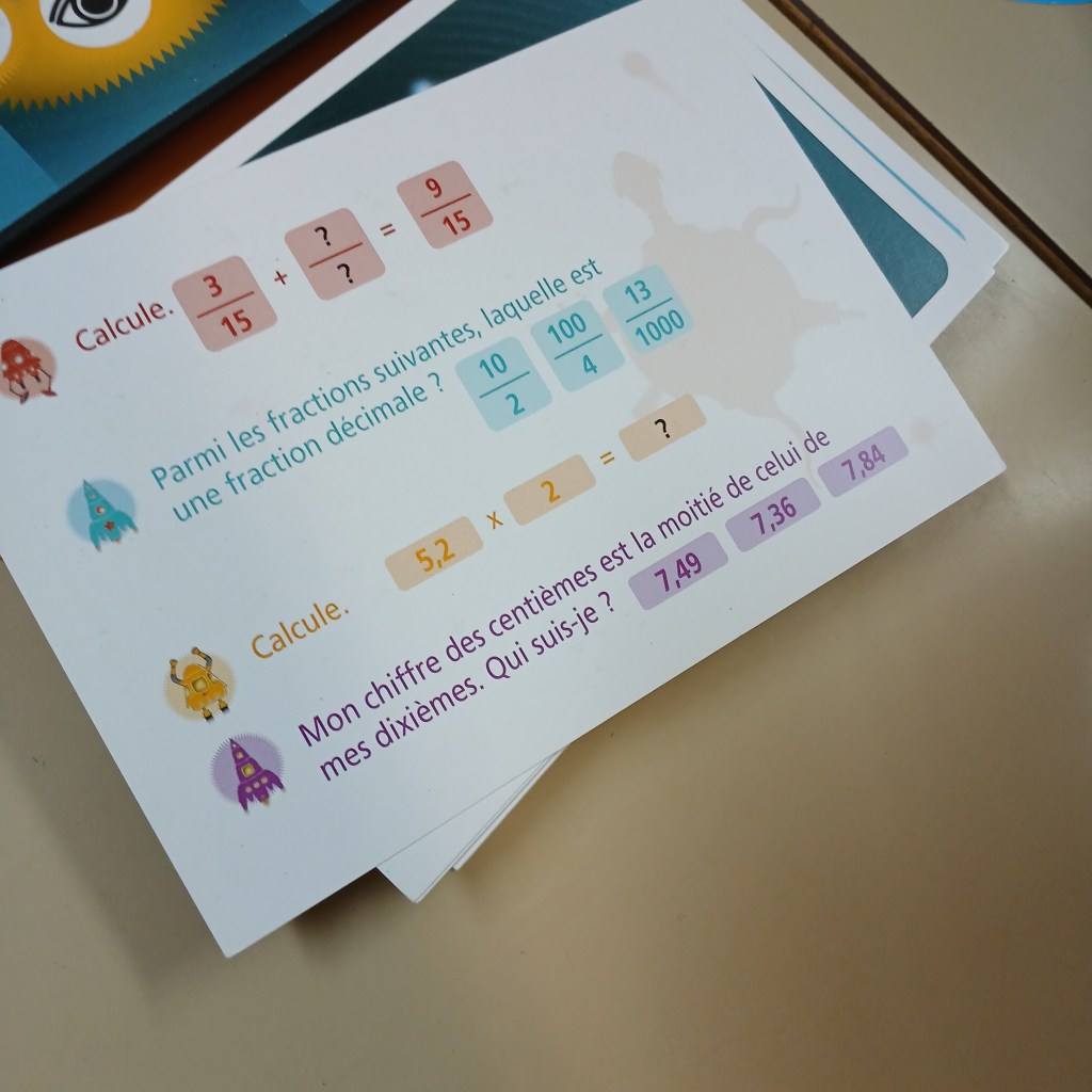 De loin, mon préféré ! Il permet de travailler les fractions, les fractions décimales et les nombres décimaux en même temps. Il est tellement bien conçu que quand on aborde les fractions, je me demande parfois si je ne ferais pas mieux de les laisser jouer à chaque séance de maths !