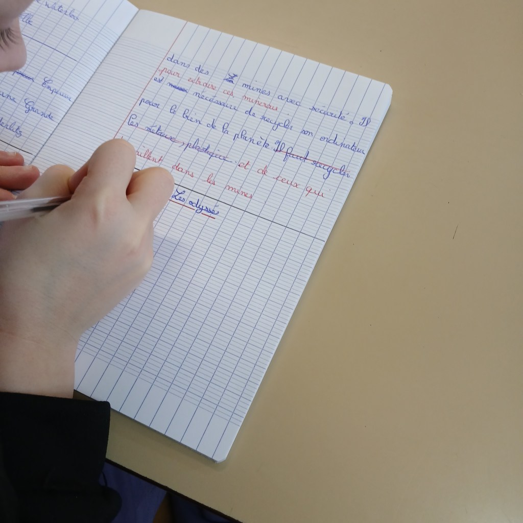 Nous avons choisi notre sujet, nous parlerons d’un Poilu mort près de notre école à l’aube de la Première Guerre mondiale à qui nous rendons hommage chaque année. Les élèves commencent à être plutôt doués dans la prise de notes !