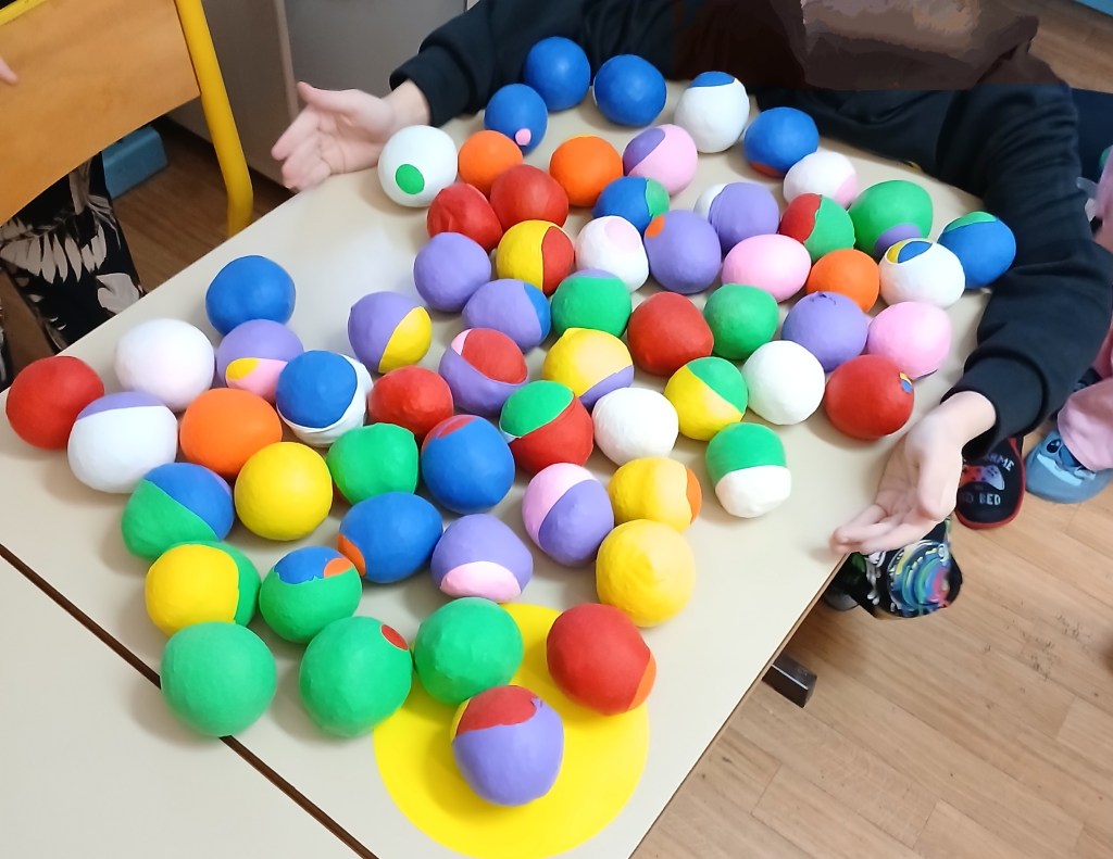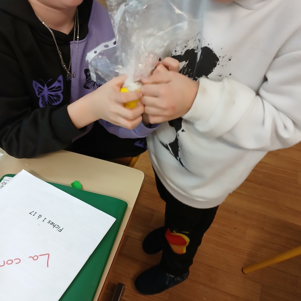 Le jeudi après-midi, c’est école de la forêt. On aime, on adore mais il y a des règles. Quand des vents à plus de 70 km/h sont prévus et que la pluie et intense, on reste en classe. Et bien, ça tombe bien ! Je commence un cycle jonglage grâce à l’appli accès EPS (si vous voulez en savoir plus, c’est par ICI). 3 balles de jonglage par élèves, 23 élèves … Même en trouvant des TRES économiques et peu éthiques, c’est évidemment hors budget. Mais, le concepteur de l’appli a tout prévu et un tuto pour construire les balles à moindre coût à servi de support à ma séance d’arts plastiques improvisées.
