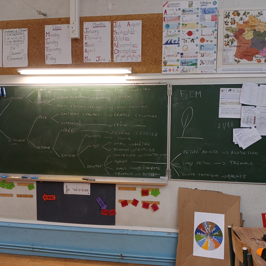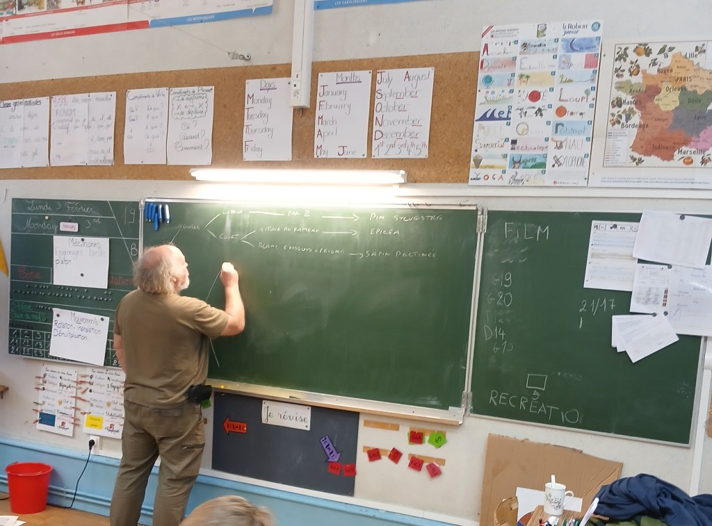 Tous les jeudis, nous délocalisons notre classe au beau milieu de la forêt. Et bien … pas aujourd’hui ! Aujourd’hui, c’est la forêt qui est venue dans notre classe.