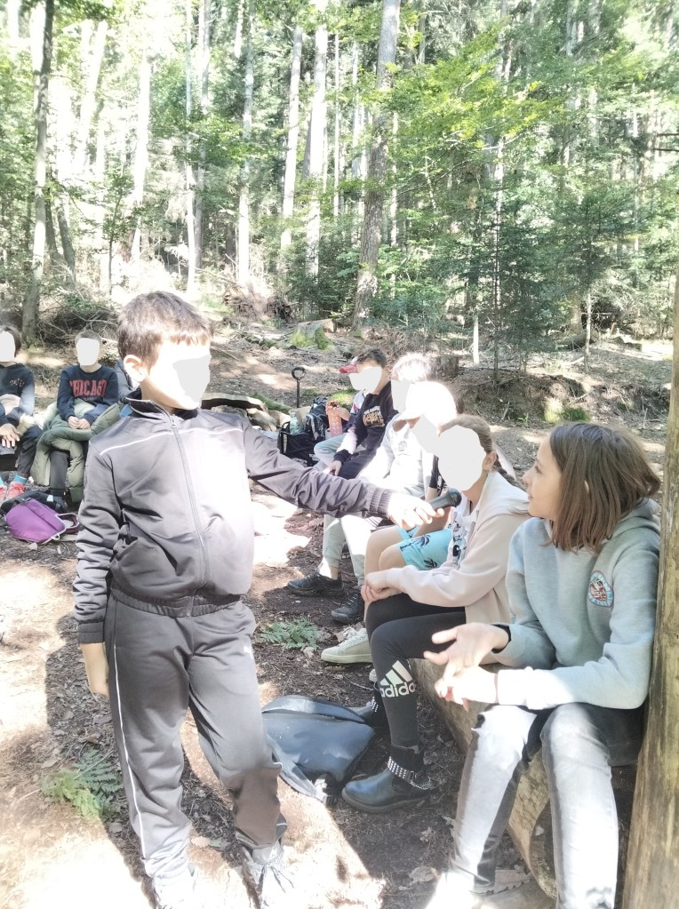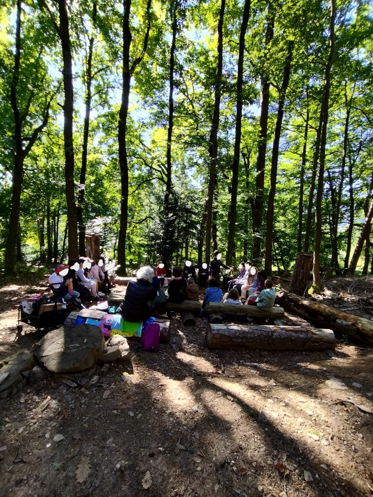 Aujourd’hui, la classe a pris le chemin de l’école de la forêt. L’air était frais, les sous-bois lumineux : des conditions idéales pour apprendre autrement, ensemble et au grand air.