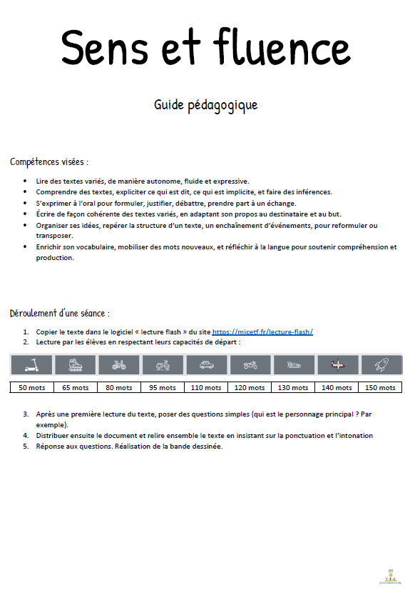 Fichier et démarche : « Sens et fluence » — textes, questions et déroulé de séance. Merci de citer la source en cas de partage.