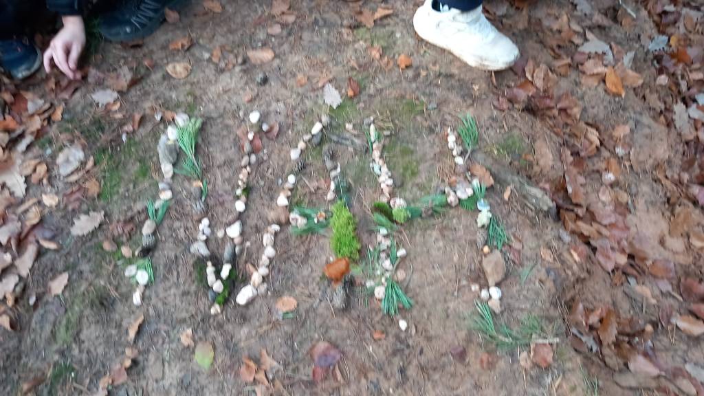 3) Land art collectif : réalisation de l’acronyme de la journée NAH (Non Au Harcèlement) avec des éléments naturels (coopération, entraide, organisation du groupe).