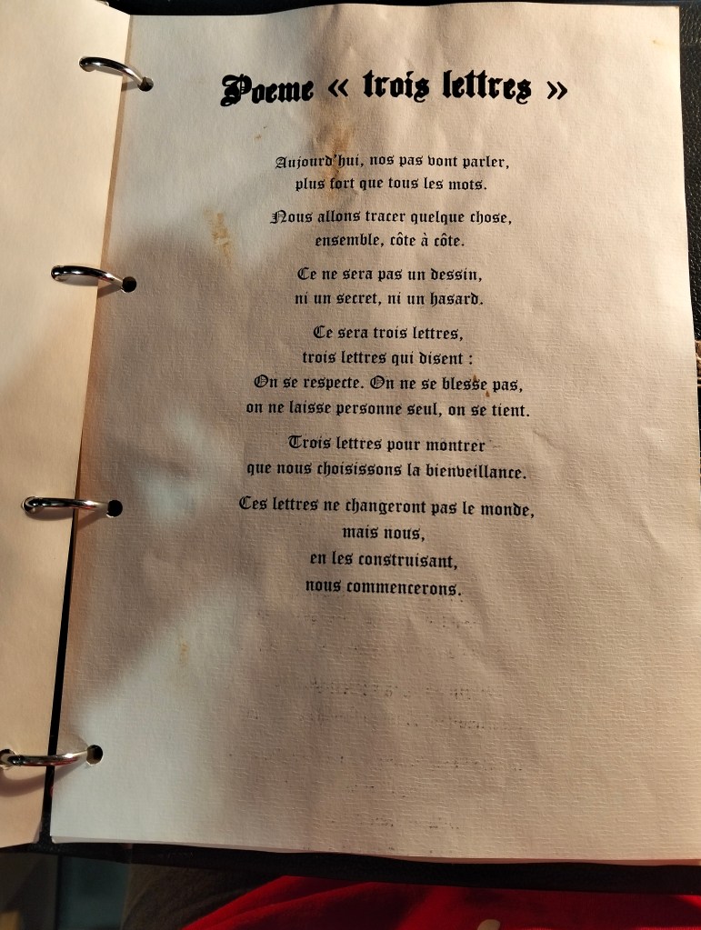 À l’occasion de la Journée nationale « Non au harcèlement », notre classe a mené une séquence de sensibilisation (questionnaire anonyme, débat guidé, création artistique collective en land art) pour comprendre, prévenir et agir face aux situations de harcèlement.