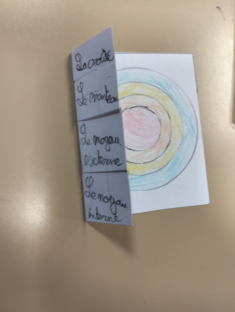 9h45 : retour de récréation. Les élèves installent les pinces à linge. J’explique que tous les groupes en attente de correction peuvent commencer les sciences : astronomie pour les CM1, composition de la planète pour les CM2. Mes leçons sont conçues pour fonctionner sans moi : pas besoin de lancement magistral, les consignes sont intégrées dans les documents. Autonomie, efficacité, économie de gestes. Je choisis d’être utile là où je suis vraiment indispensable : à la correction et à l’aide ciblée.