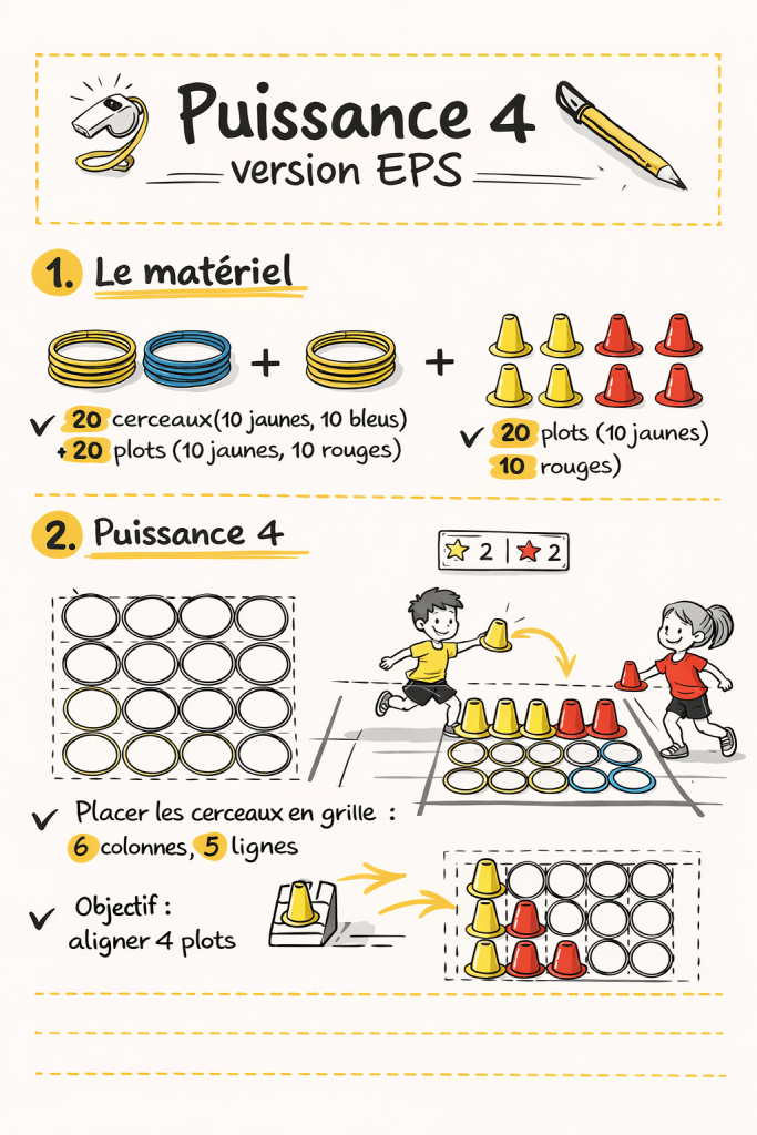 L’intérêt, c’est qu’avec peu de matériel (quelques plots, quelques cerceaux, un espace dégagé), on obtient des séances qui font bouger, réfléchir, coopérer… et qui collent parfaitement aux attendus de l’EPS cycle 3 : s’organiser collectivement, élaborer des stratégies, respecter des règles, assumer des rôles (joueur, arbitre, observateur), s’engager avec les autres et réguler les émotions liées au jeu. Ce sont des compétences explicitement attendues dans les programmes 2025 du cycle 3.